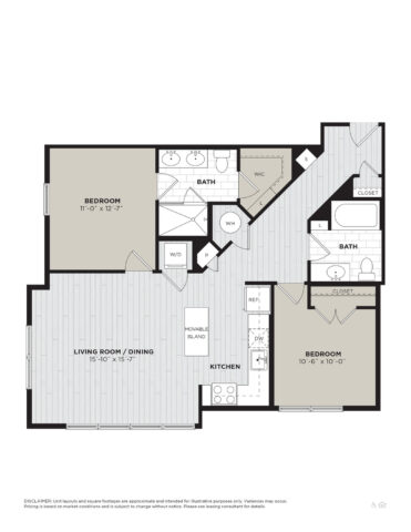 Floorplans are an artist’s rendering and may not be to scale. The landlord makes no representation or warranty as to the actual size of a unit. All square footage and dimensions are approximate, and the actual size of any unit or space may vary in dimension. The rent is not based on actual square footage in the unit and will not be adjusted if the size of the unit differs from the square footage shown. Further, actual product and specifications may vary in dimension or detail. Not all features are available in every unit. Prices and availability are subject to change. Please see a representative for details.