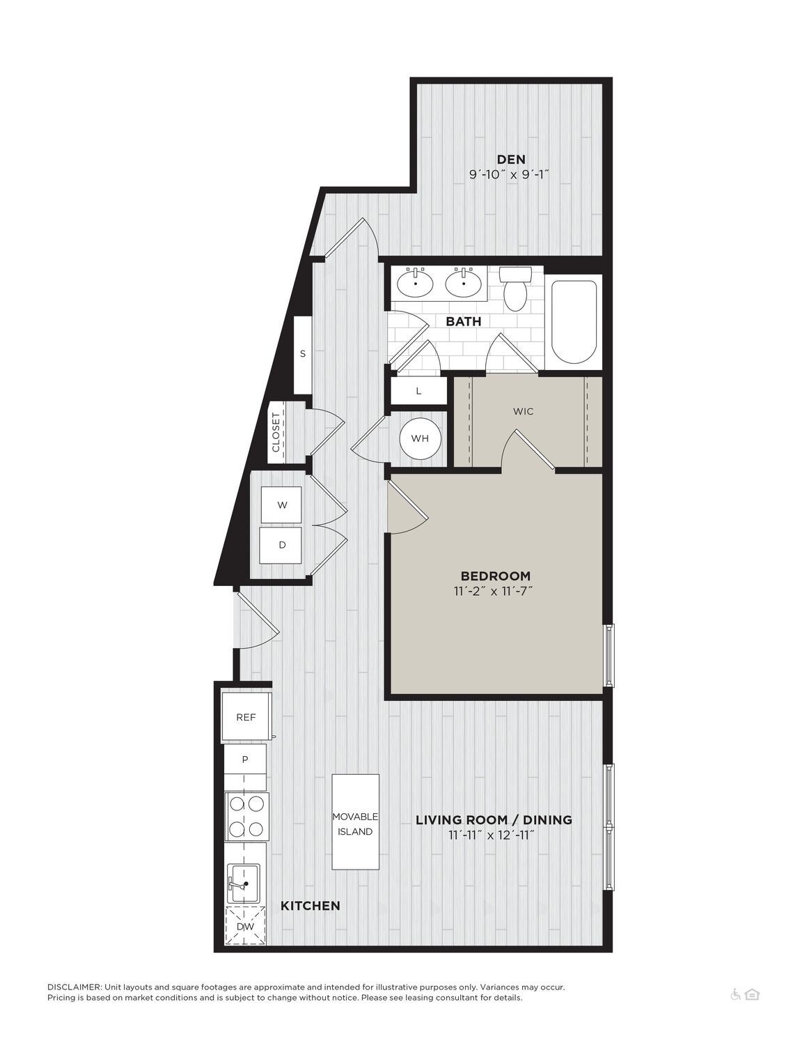 Floorplans are an artist’s rendering and may not be to scale. The landlord makes no representation or warranty as to the actual size of a unit. All square footage and dimensions are approximate, and the actual size of any unit or space may vary in dimension. The rent is not based on actual square footage in the unit and will not be adjusted if the size of the unit differs from the square footage shown. Further, actual product and specifications may vary in dimension or detail. Not all features are available in every unit. Prices and availability are subject to change. Please see a representative for details.