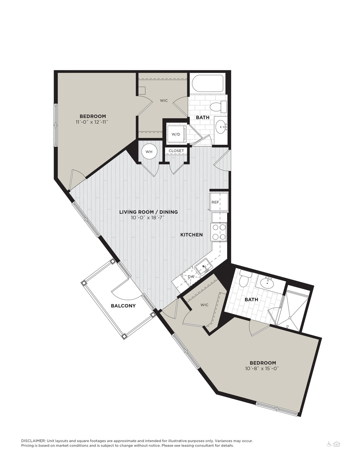 Floorplans are an artist’s rendering and may not be to scale. The landlord makes no representation or warranty as to the actual size of a unit. All square footage and dimensions are approximate, and the actual size of any unit or space may vary in dimension. The rent is not based on actual square footage in the unit and will not be adjusted if the size of the unit differs from the square footage shown. Further, actual product and specifications may vary in dimension or detail. Not all features are available in every unit. Prices and availability are subject to change. Please see a representative for details.