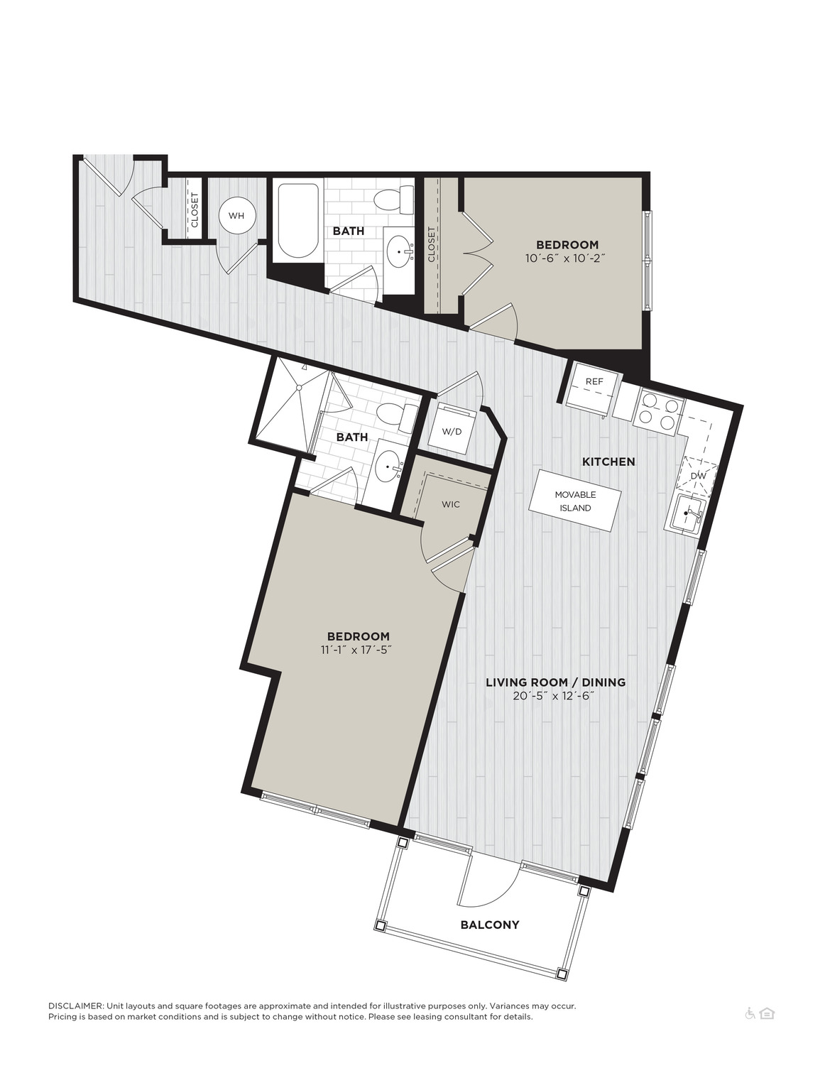 Floorplans are an artist’s rendering and may not be to scale. The landlord makes no representation or warranty as to the actual size of a unit. All square footage and dimensions are approximate, and the actual size of any unit or space may vary in dimension. The rent is not based on actual square footage in the unit and will not be adjusted if the size of the unit differs from the square footage shown. Further, actual product and specifications may vary in dimension or detail. Not all features are available in every unit. Prices and availability are subject to change. Please see a representative for details.